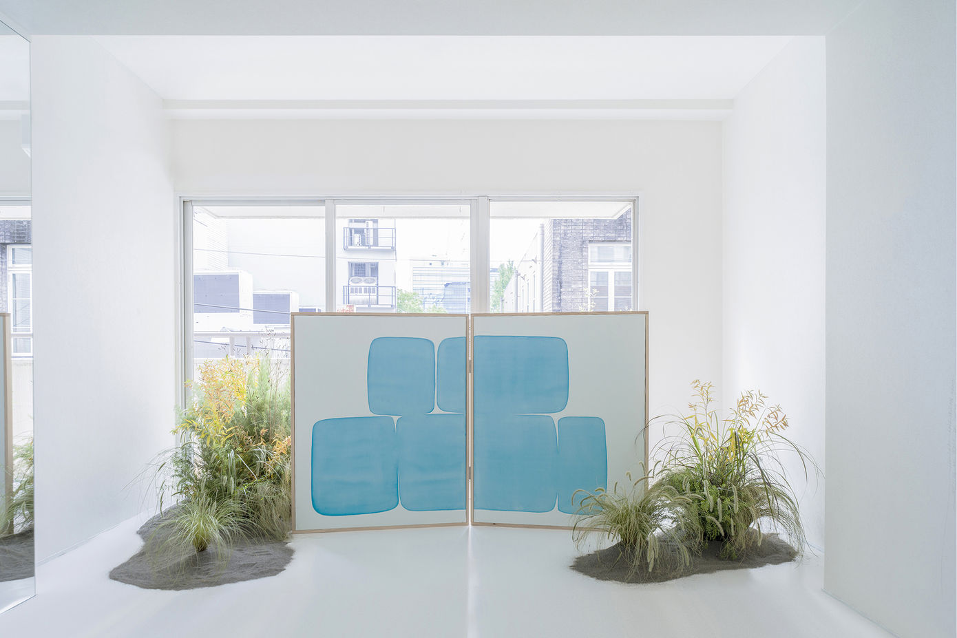 村松朋広(画家)と井上揚平(花)による展覧会を行います。両者は、2023年鎌倉に野山の草花を扱う店舗とアートスタジオ、「鎌倉 緑青」を構えました。その場を通して体感した自然観、生と死、アニミズム、日本の神話、古代史や文化などから着想を得た二人の「緑青」としての自然を表した展示です。